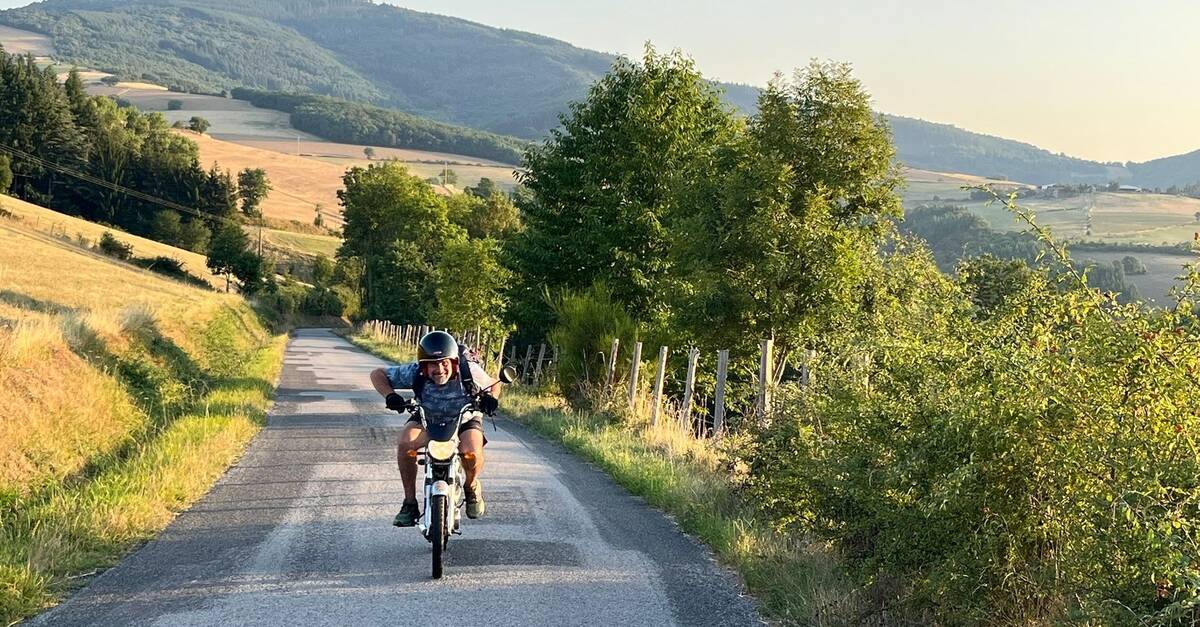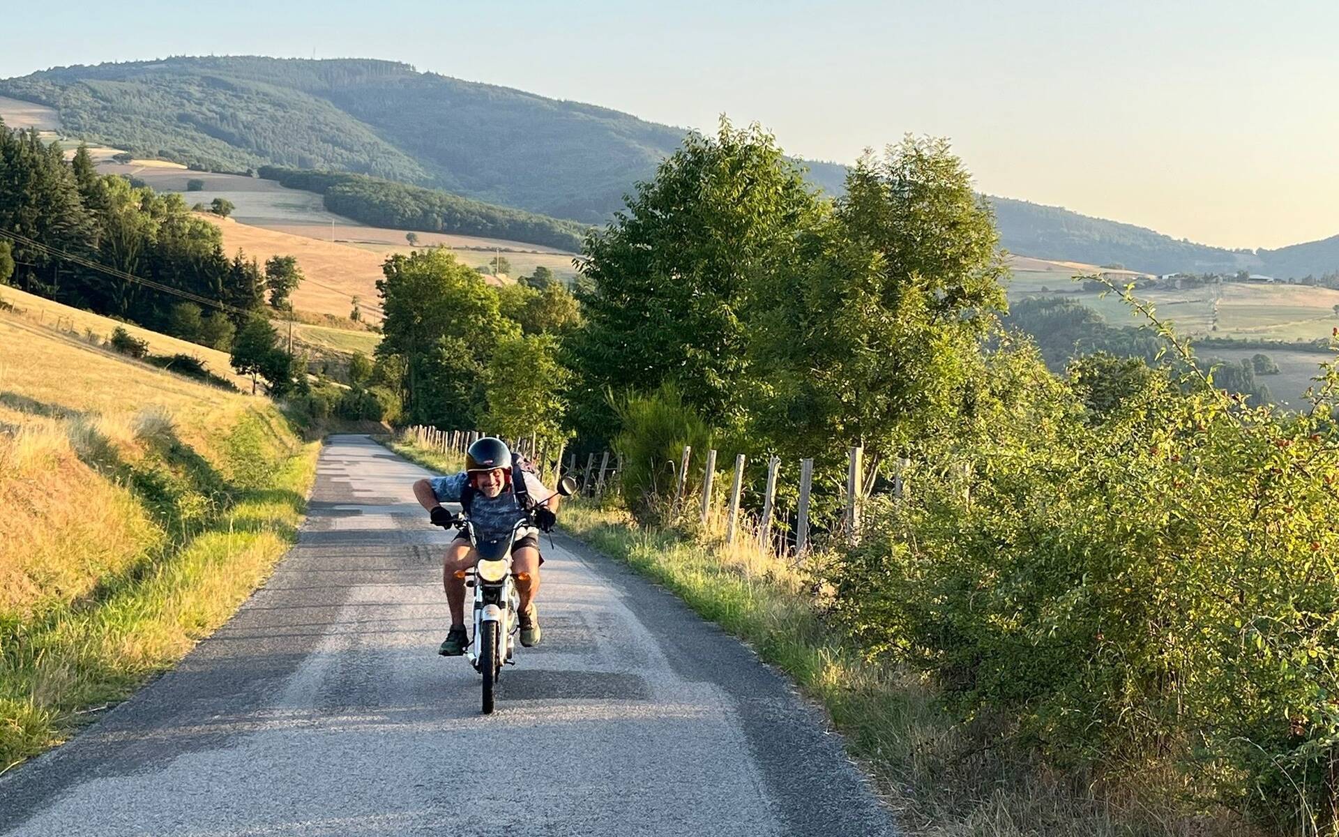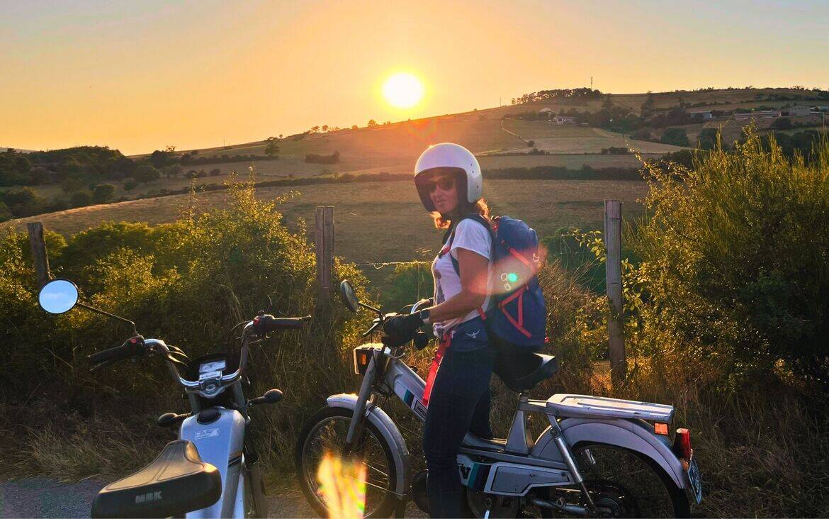 Les premiers kilomètres se font prudemment, presque au pas. Puis, petit à petit, je prends confiance : un coup de gaz, et nous voilà filant à travers routes et chemins, avec ce bruit de mobylette qui fait immédiatement rajeunir..