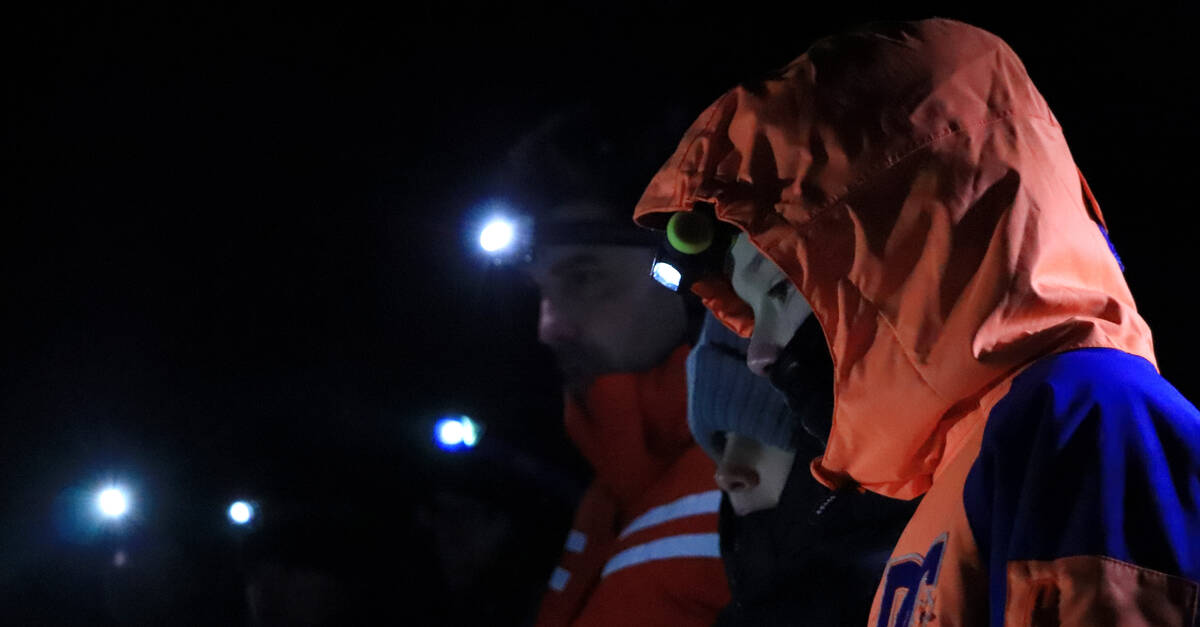 Après une halte sur le point culminant du Pilat, Florian nous conseille de retarder l'allumage des lampes pour profiter un peu des étoiles et laisser nos yeux s'habituer, dans le silence, on regarde le ciel et on profite de ce moment particulier avant de poursuivre notre avancée comme de vrais gamins qui découvrent la neige de nuit dans une ambiance de colo de vacances.