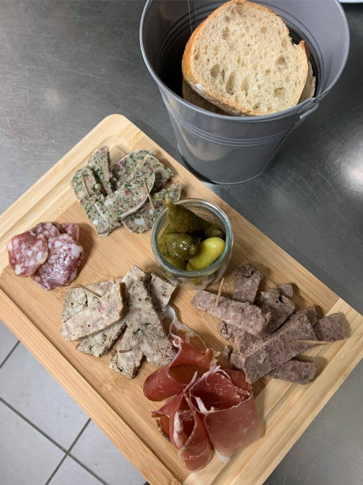 Et dans le traditionnel, retrouvez les cuisses de grenouilles ou une belle assiette de charcuterie produite pas très loin, à Sainte-Croix-en-Jarez par la ferme des Chartreux.