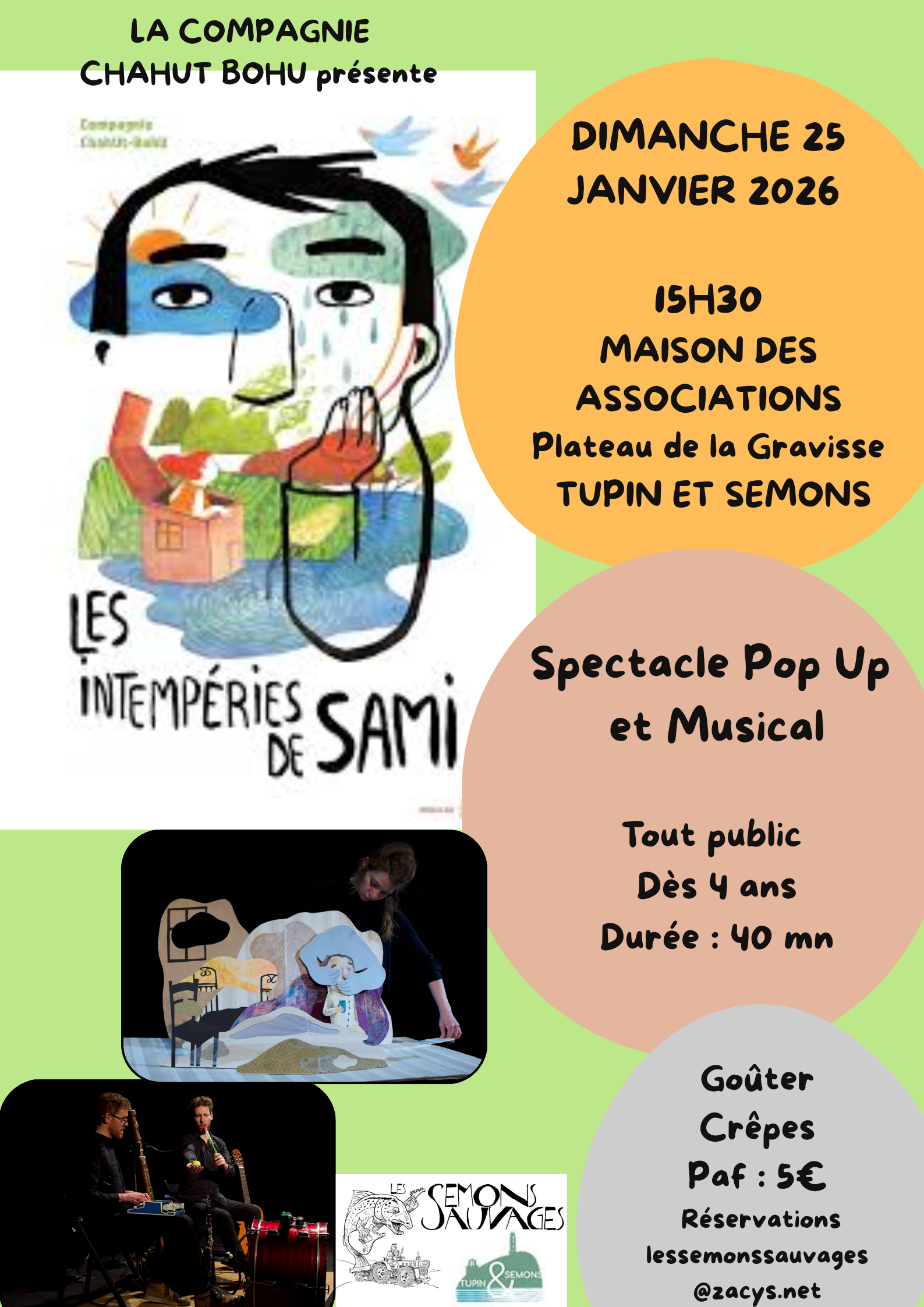 Cie Chahut BohuLa compagnie Chahut Bohu avec l'association les Semons Sauvages, vous proposent Les Intemperies de Sam. Un spectacle pop up et musique baroque pour jeune public à partir de 4 ans